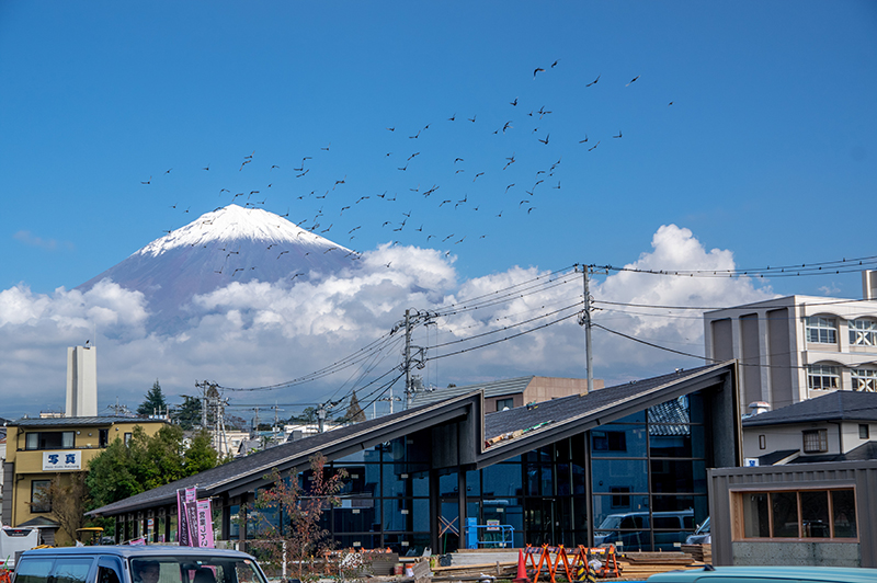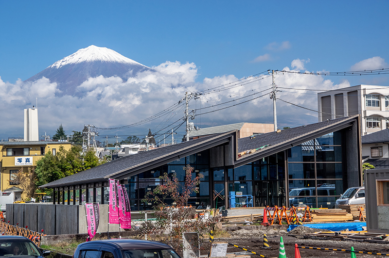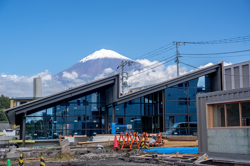 工事中のブルワリー&レストランと富士山