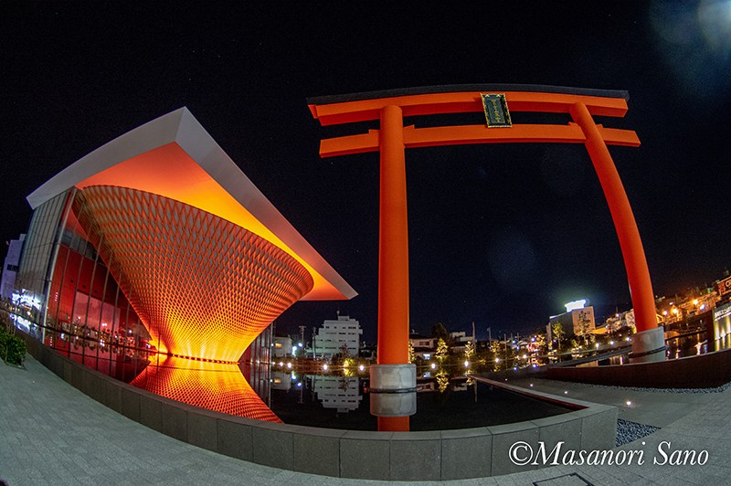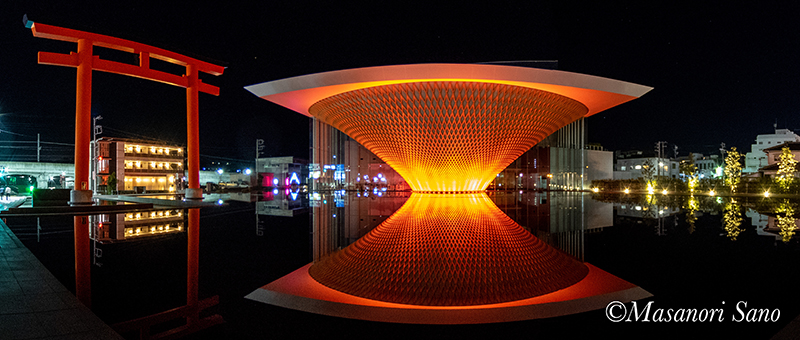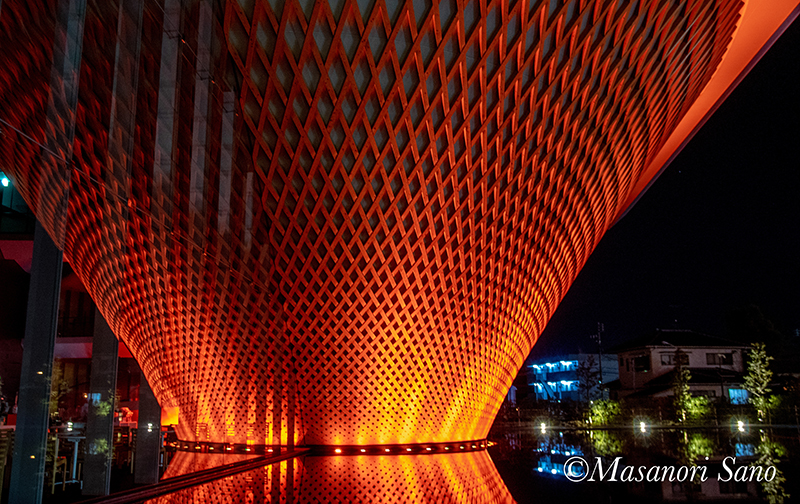 これとは別に、特別な日には通常の照明食でなくその日のイメージに沿った色の照明がされることがあるようで、1月1日は赤色でした。