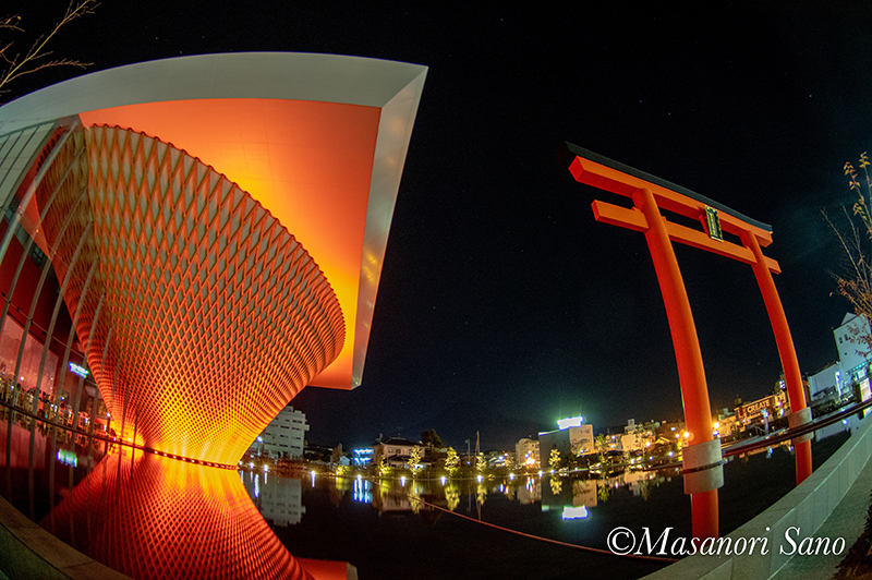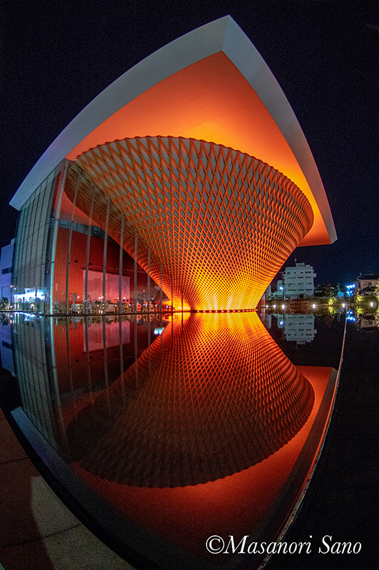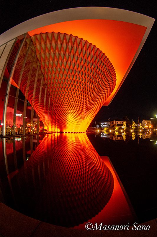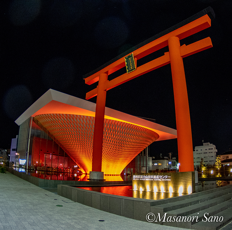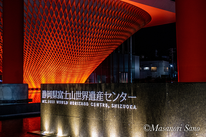 静岡県富士山世界遺産センターの夜間照明は、通常3色混合で白より少し暖色系です。