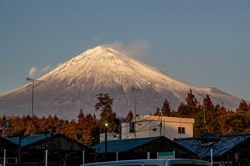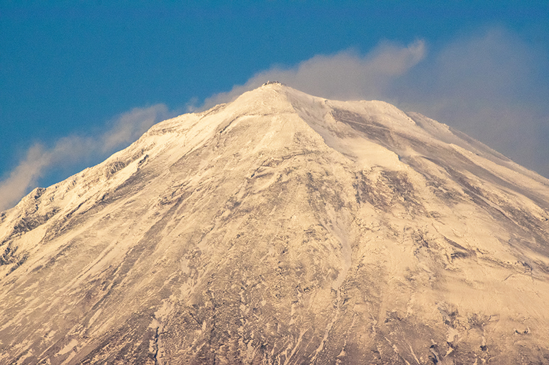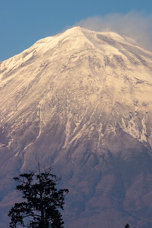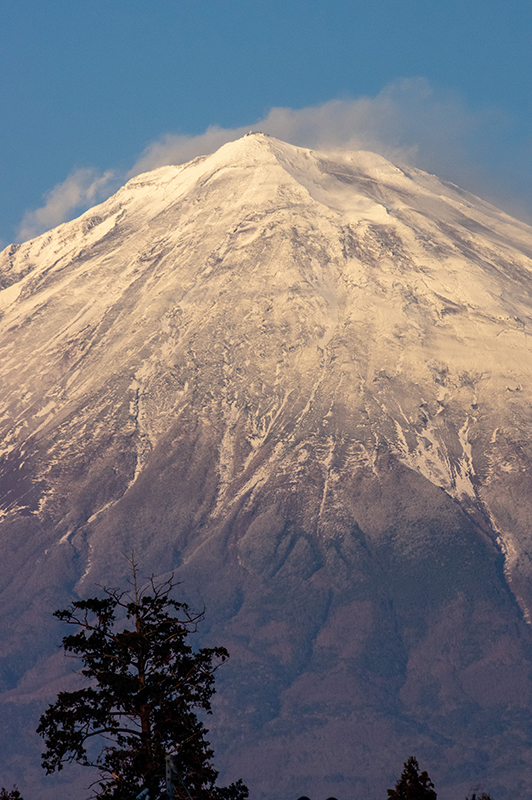 1月20日は朝からぽつぽつと雨が降っていましたが、夕刻薄らと雪化粧した富士山が顔を見せました。 1月は今までまとまった雨もなく雪化粧は斑でしたが、少しだけ化粧直ししました。