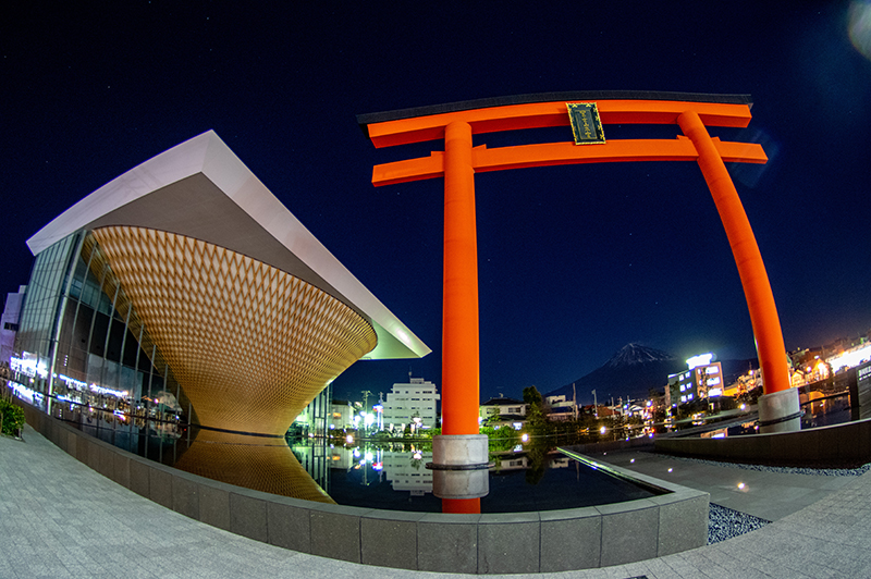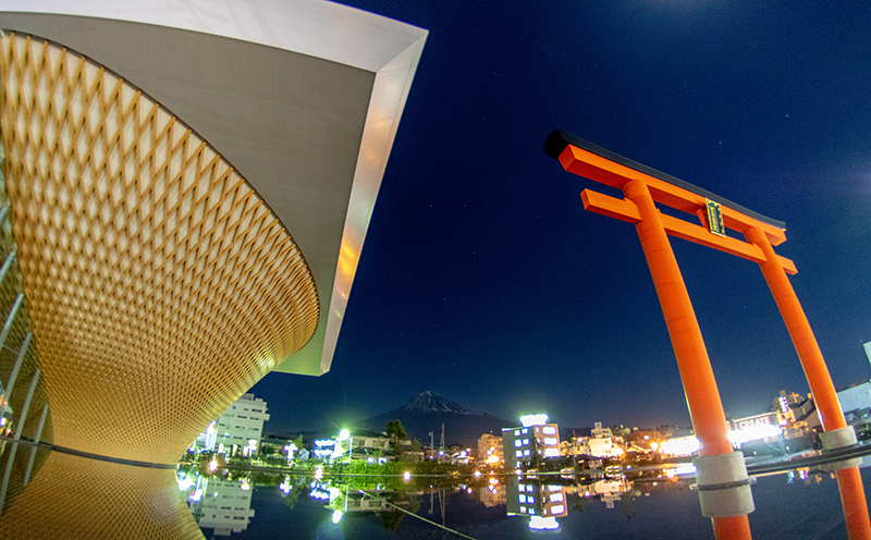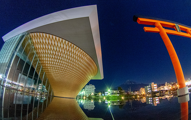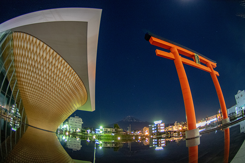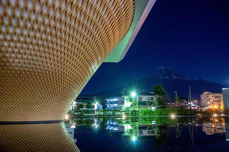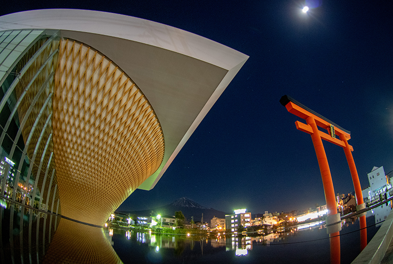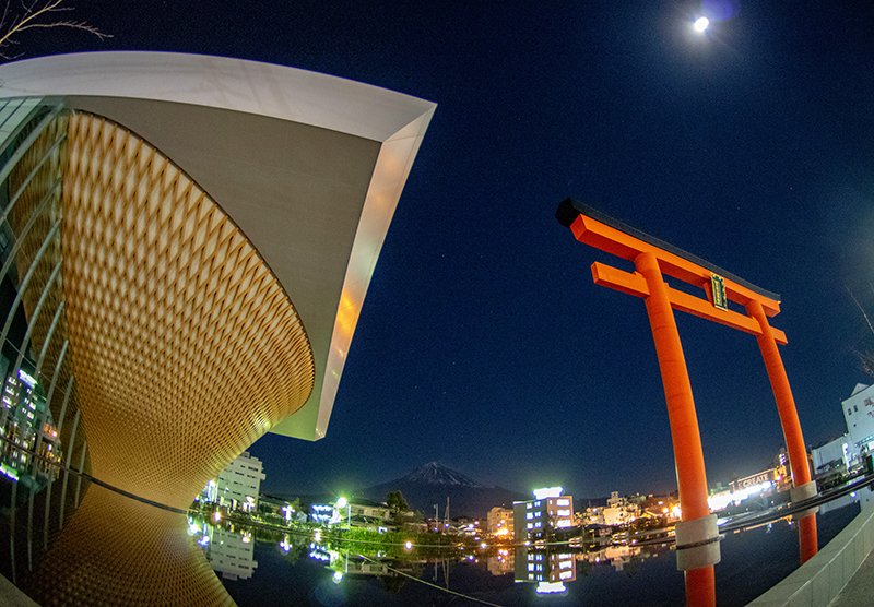 静岡県富士山世界遺産センターのLED照明が消えるのを待って、月明かりの富士山と世界遺産センターを撮りに行きました。
