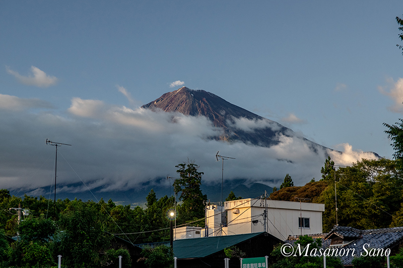 平成30年6月18日、朝から降り続いた雨が夕刻晴れ上がり、富士山が顔を見せました。