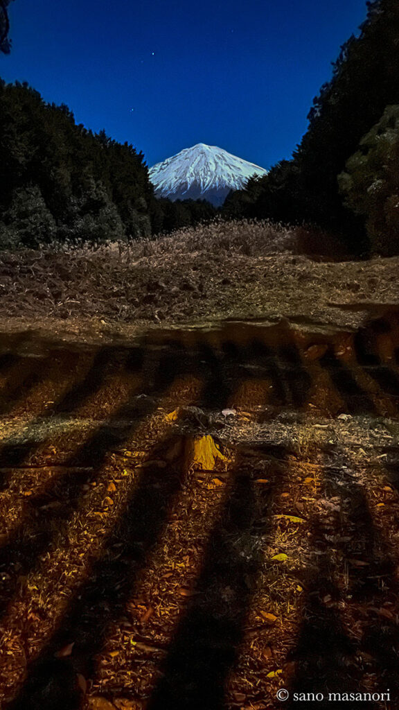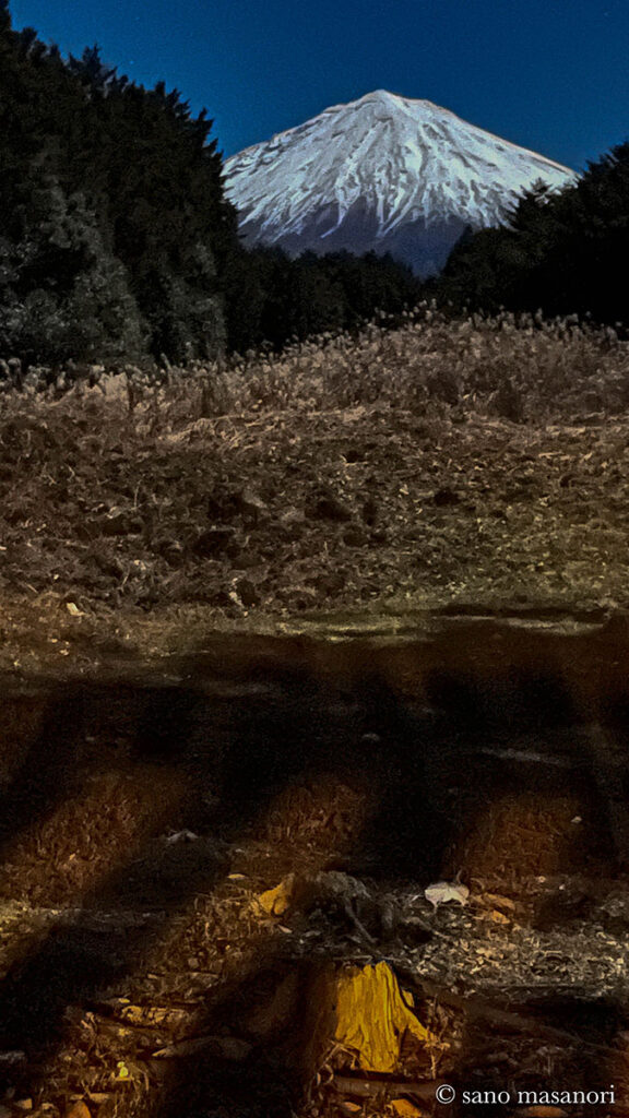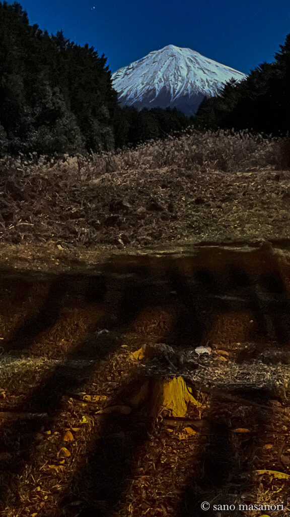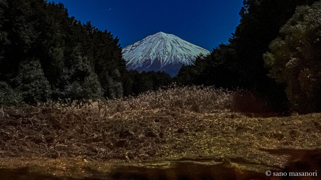冬 夜景 季節 未分類 masa4989 2026年4月22日 0 コメント 1月3日山宮浅間神社からの月夜の富士山 年末年始だけ山宮浅間神社の富士山遥拝所が開放され、1月4日早朝まで空いていると言うので午後10時に夜勤を終えてから向かいました。カメラを取りに家に戻るのも時間が惜しかったので、iPhone13で撮影しました。手ブレは覚悟していたのですが、結構止まるものですね。